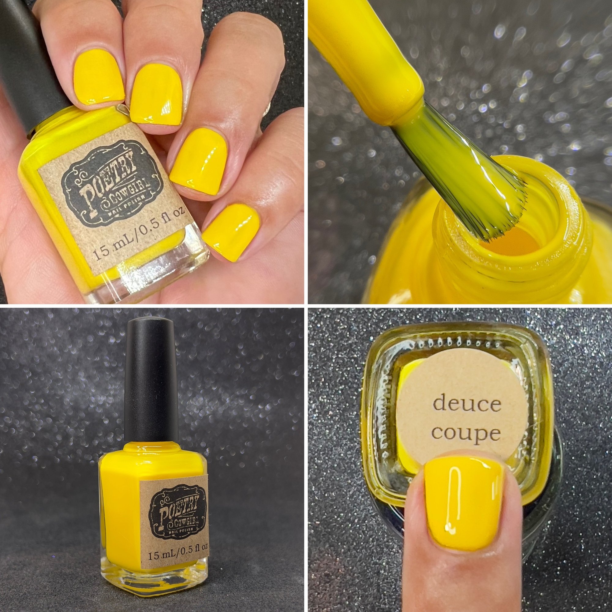 Deuce Coupe is a bright banana yellow cream. Opaque in 2-3 coats.