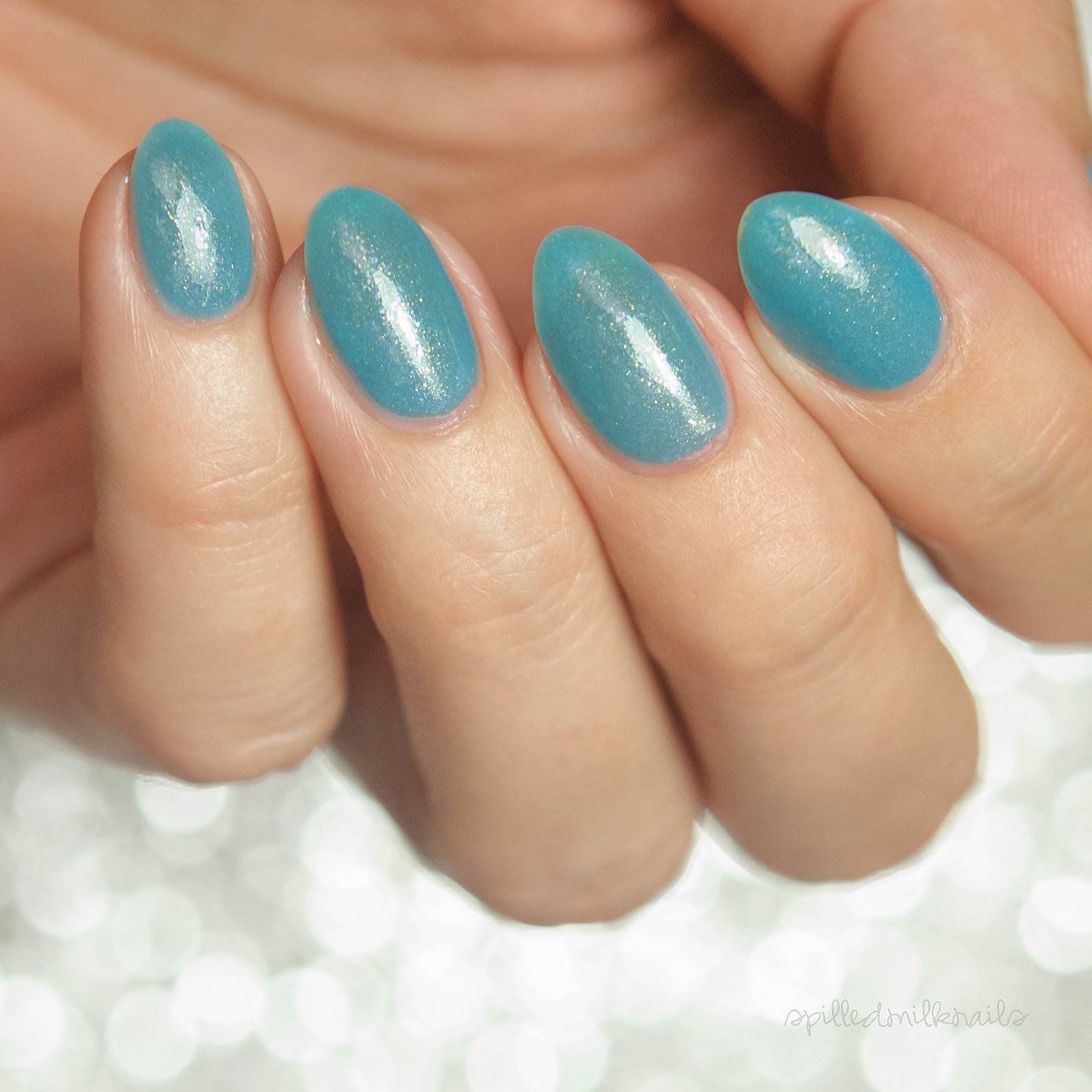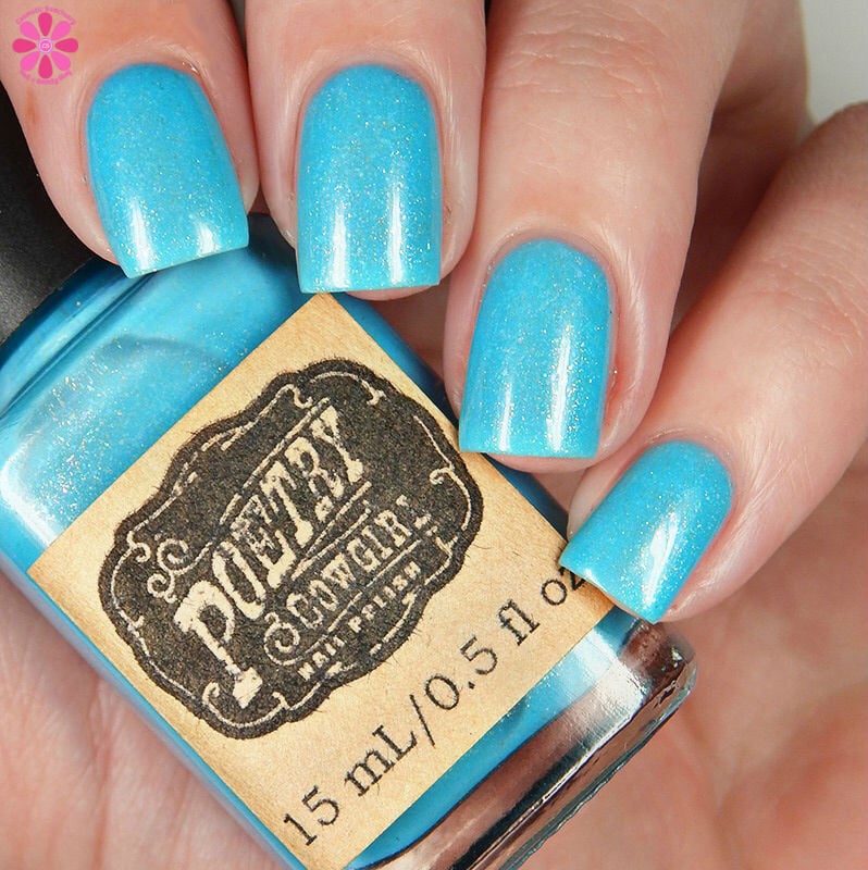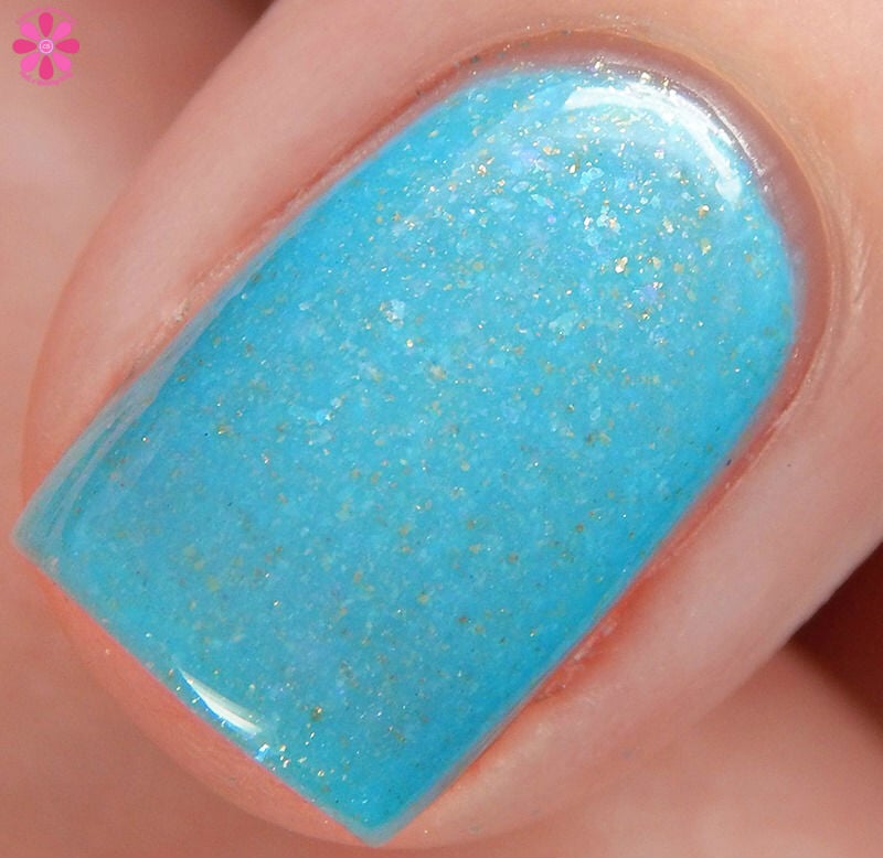 In The Pool is a vibrant light blue filled with purple and gold sparkles, and rainbow micro flakies.