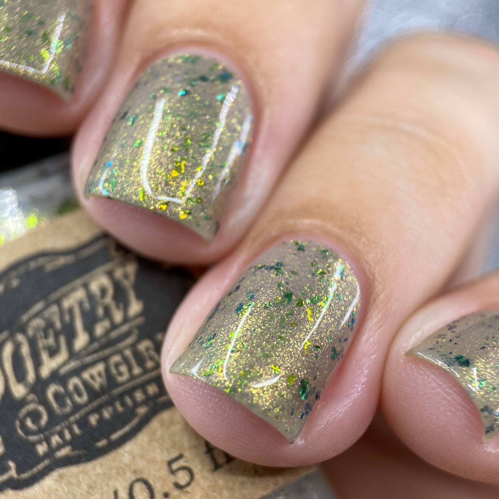 Live For The Trees is an ash grey base packed with bronze-green UCC flakies and a touch of peridot metallic micro flakies.