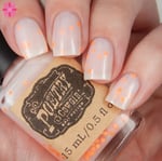 Orange Fizz is a semi-sheer white crelly with gold micro glitters and larger matte neon orange glitters. Can be built up for full coverage or layered over your favorite base color!