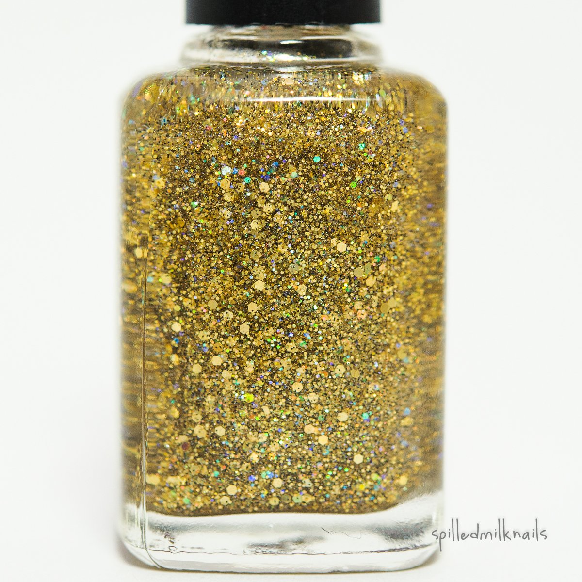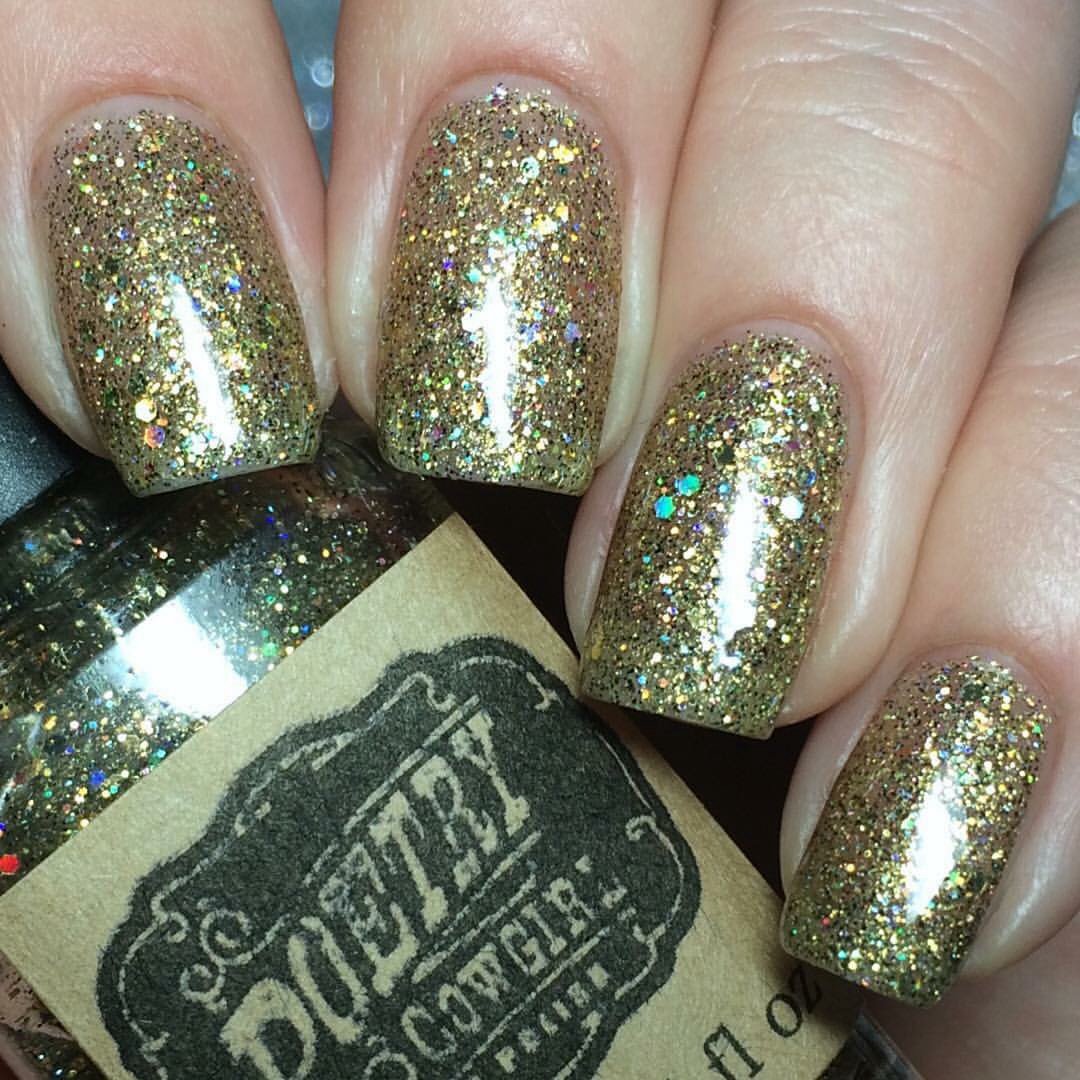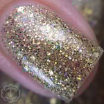 Ornament Dust is a full coverage glitter packed with gold holo and iridescent glitters, with a hint of black, gold, and silver micro glitters. Inspired by the beautiful glittery mess left behind after putting up the holiday ornaments!