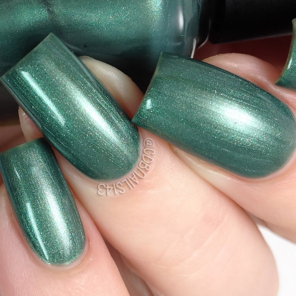 Under the Mistletoe is a soft dusty green shimmer with a metallic finish.