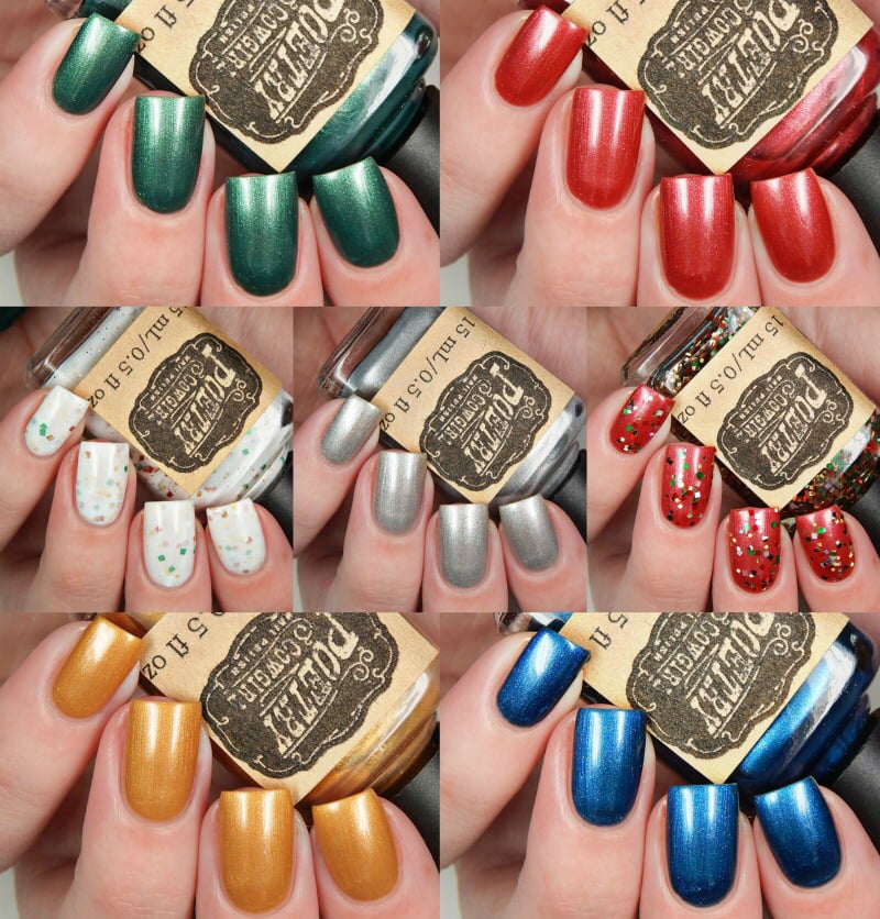 The Victorian Christmas Collection includes 7 polishes. All colors and names are inspired by Victorian Era Christmas: