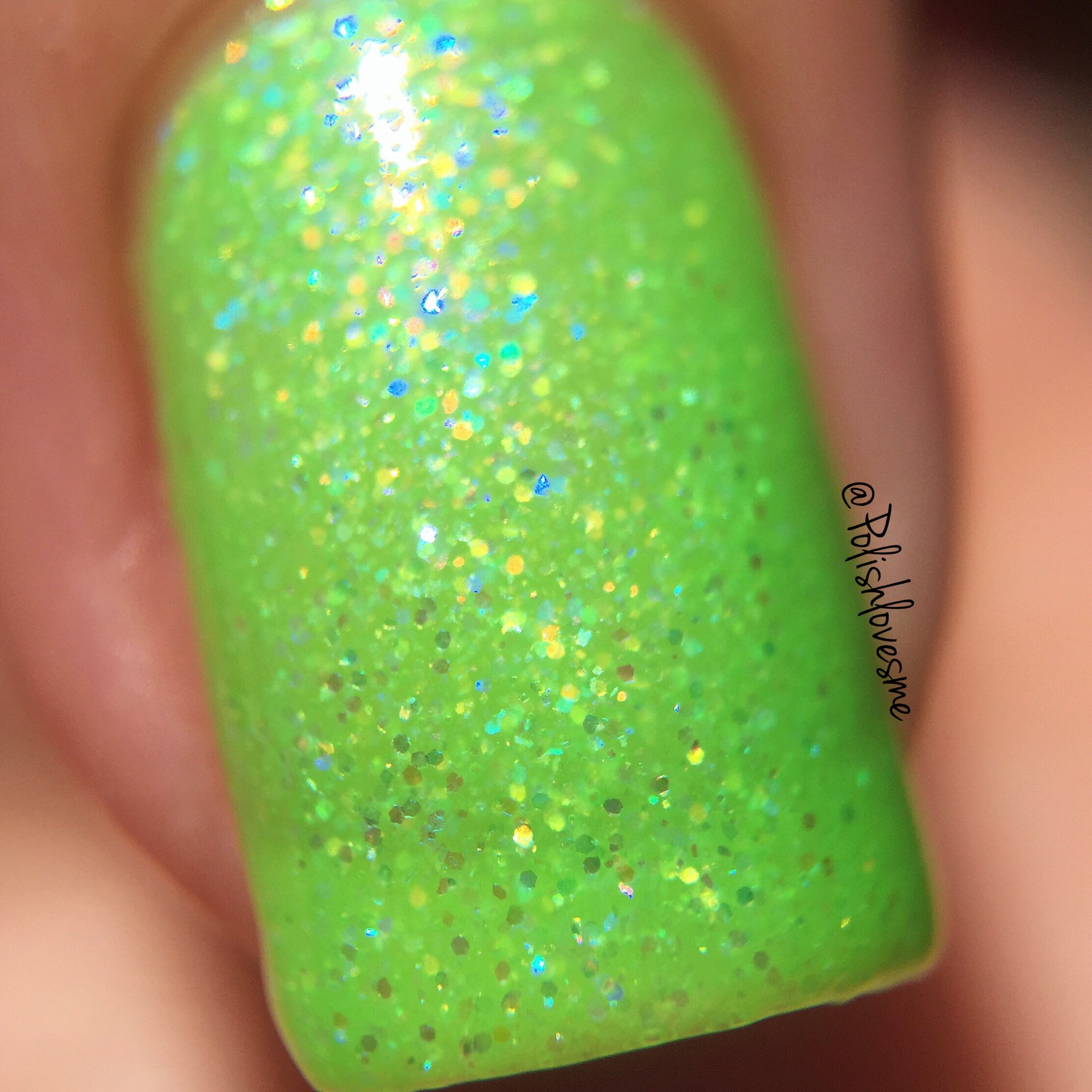 Where’s Balto? is a spring green neon jelly packed with iridescent rainbow glitters and flakies.